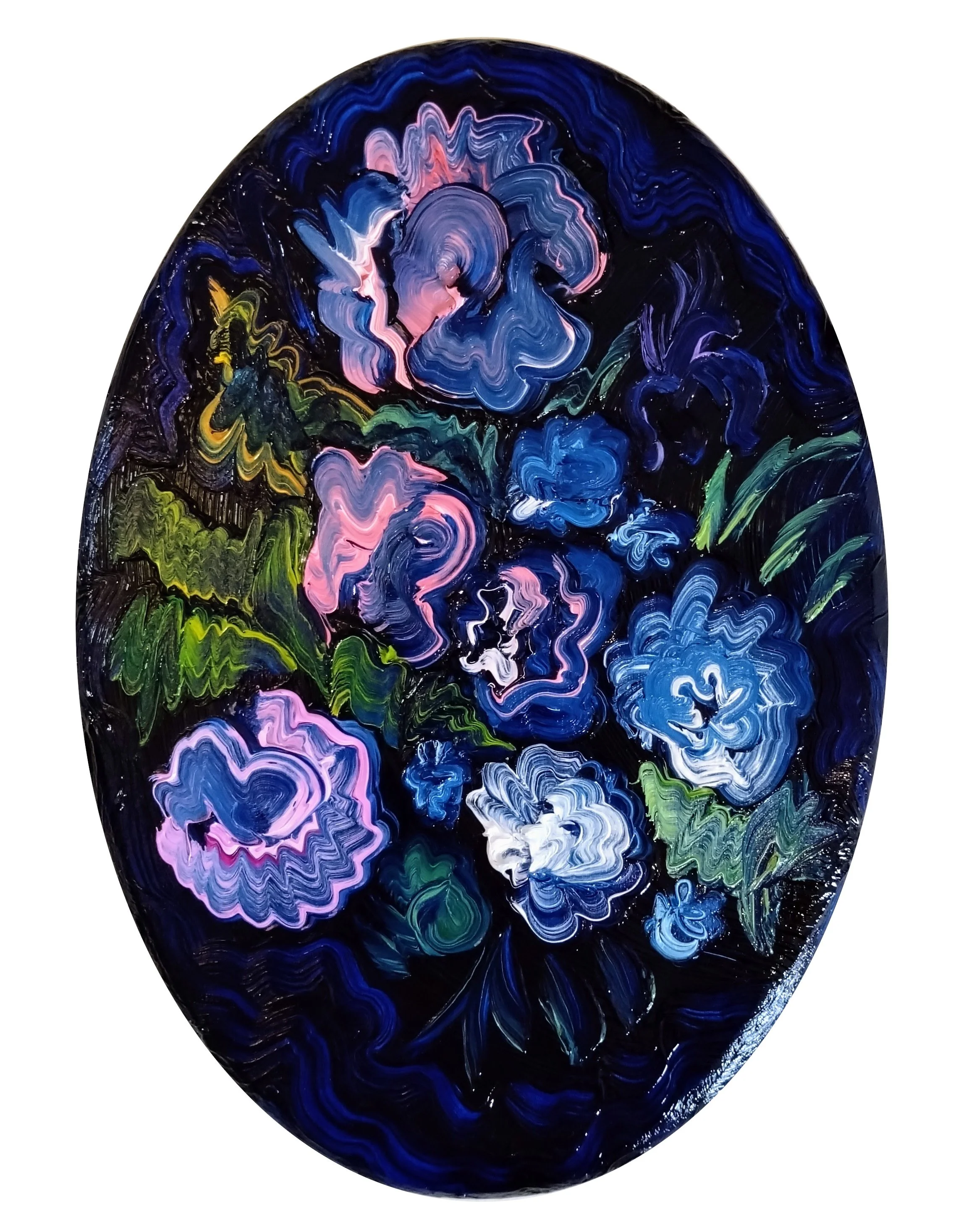 Blue Blooms, Oil on wood, 15 x 10cm, 2024