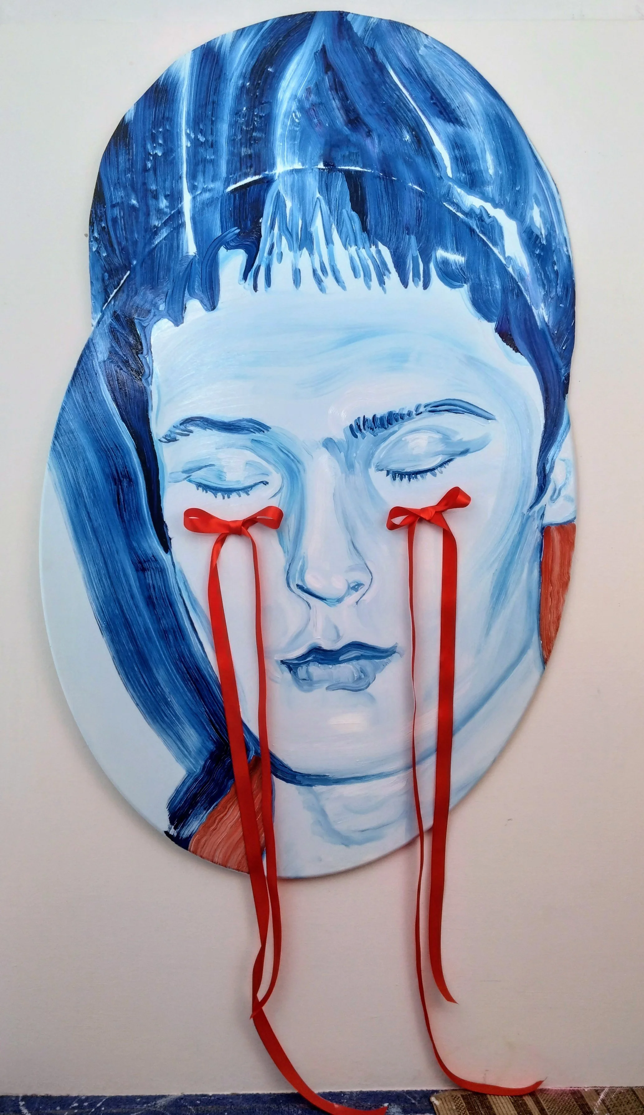 Oil, resin and ribbons on wood, 160 x 90cm, 2025