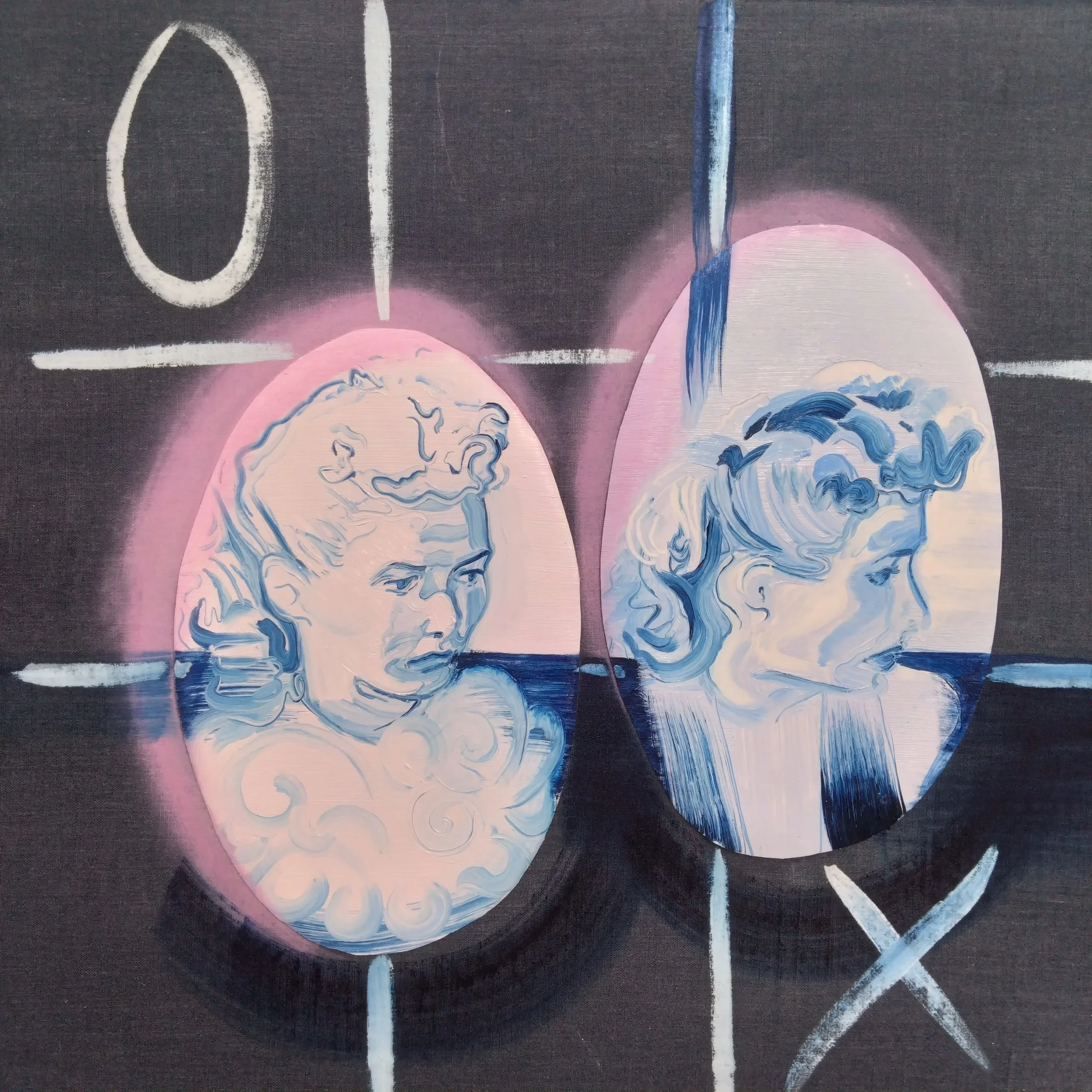 Players, Oil and collage on linen and canvas, 60x 60cm, 2025